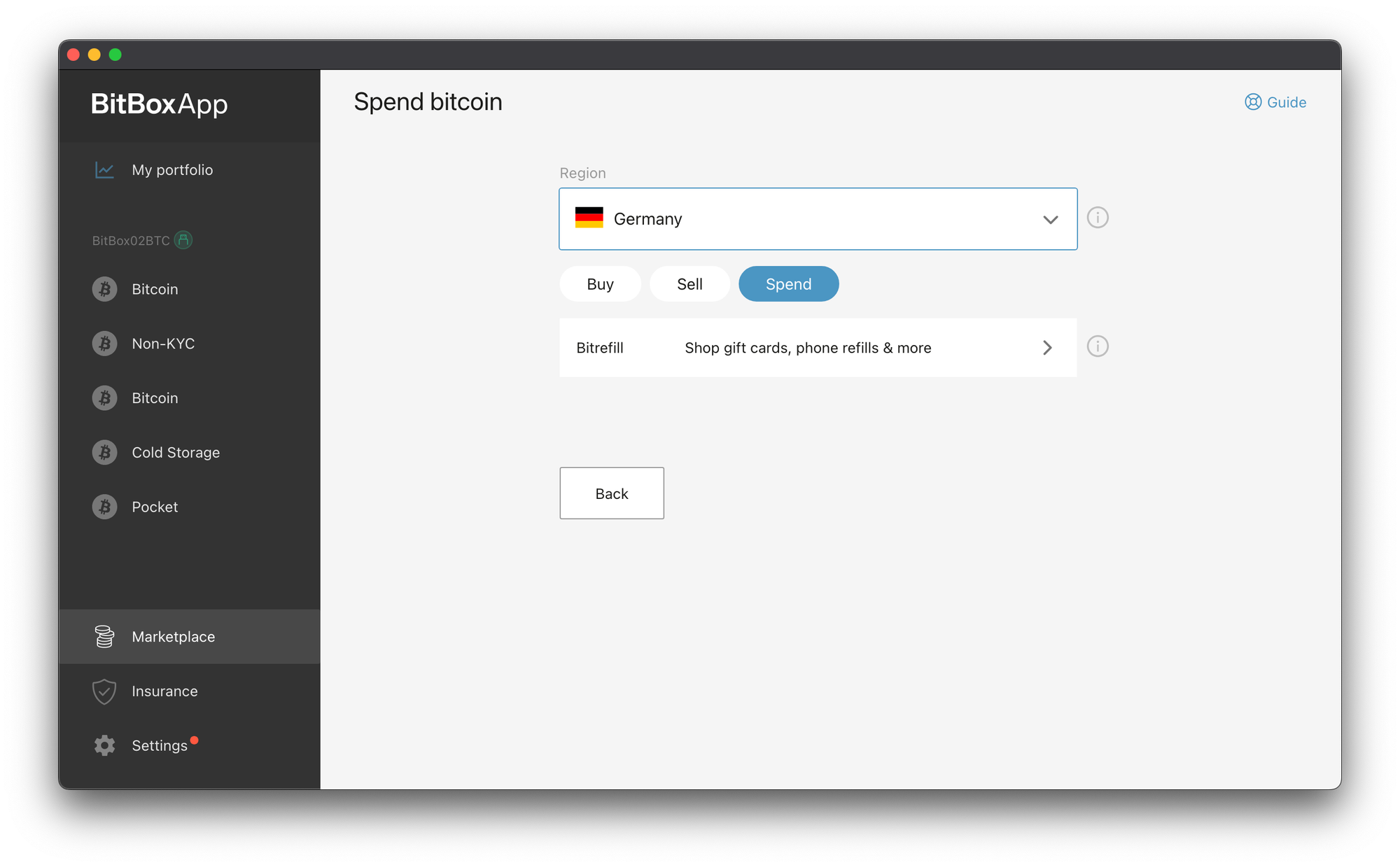 Die Nutzung von Bitrefill in der BitBoxApp ist bewusst übersichtlich gestaltet. Hier ein kurzer Überblick: