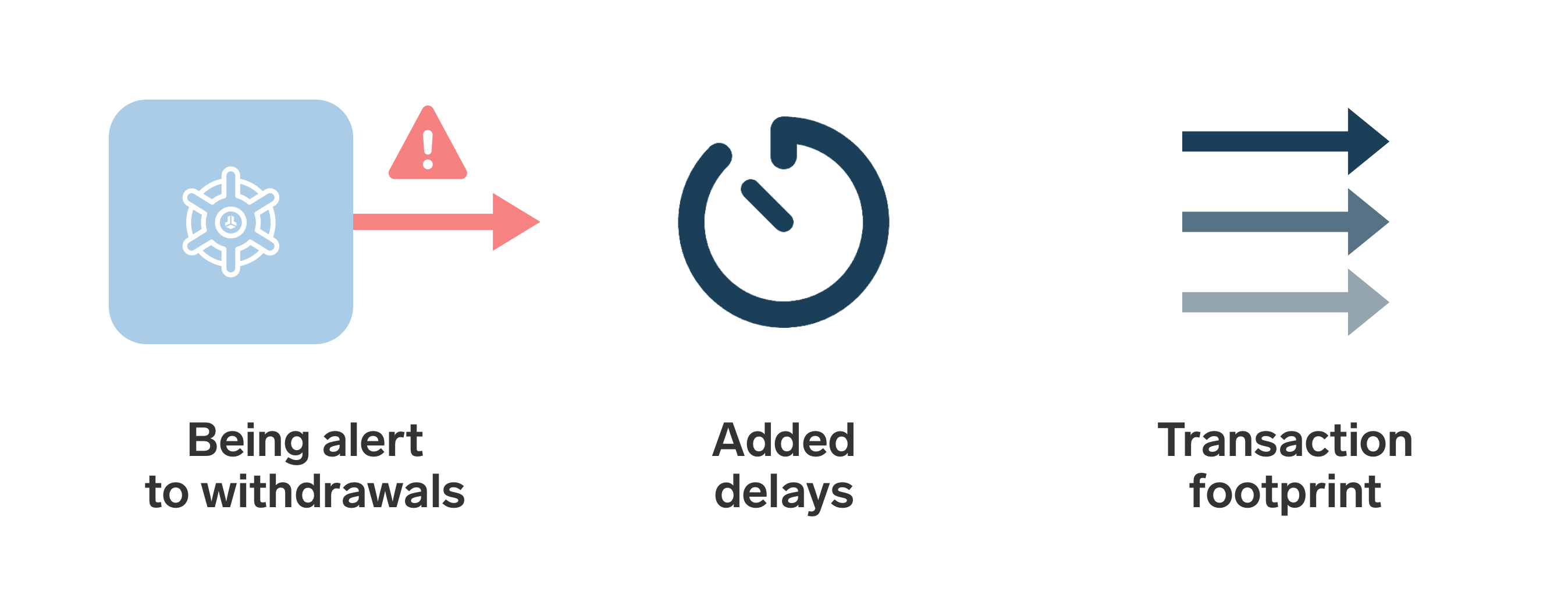 Elegir la duración del período de espera también es un dilema en sí mismo: agregar más tiempo facilita detectar y reaccionar ante retiros maliciosos, pero también retrasa aún más las transacciones regulares y viceversa.